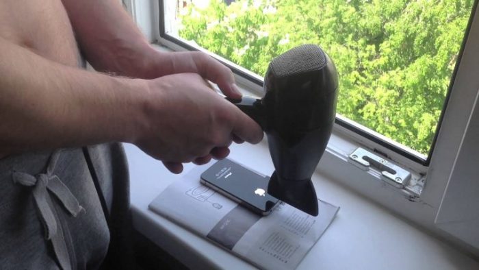 Фен — в принципе вредная и опасная вещь, особенно при попытке использовать его для просушки техники, которая вступила в контакт с водой. Если пытаться высушить гаджет таким образом, то скорее нанесешь ему вред, чем спасешь. Все потому, что воздух из фена очень быстро загонит капли в труднодоступные места. Кроме того, горячий воздух наносит вред контактам.