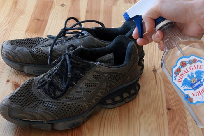 Водкой легко можно устранить главный источник неприятного запаха — бактерии. Достаточно распылить водку на зловонные ботинки. Запах самого алкоголя исчезнет, как только намоченное водкой место высохнет.