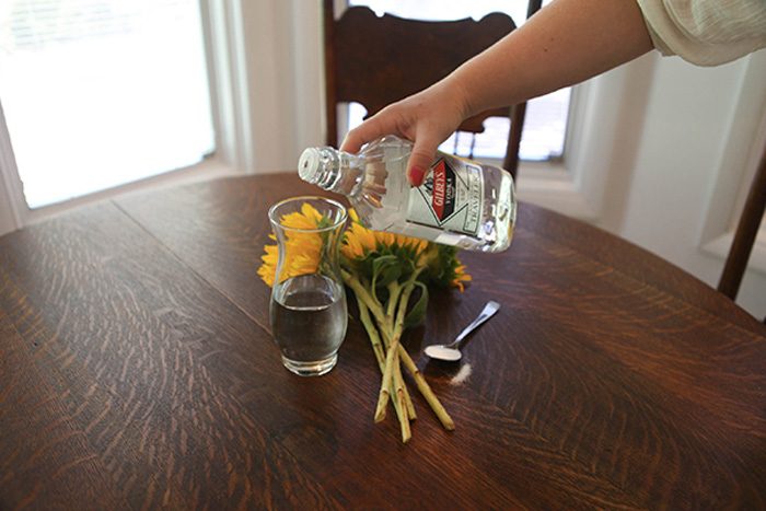 Рано или поздно срезанные цветы начинают вянуть. Если в воду добавить водки, цветы простоят в вазе дольше. Оптимальная пропорция — столовая ложка на обычную вазу.