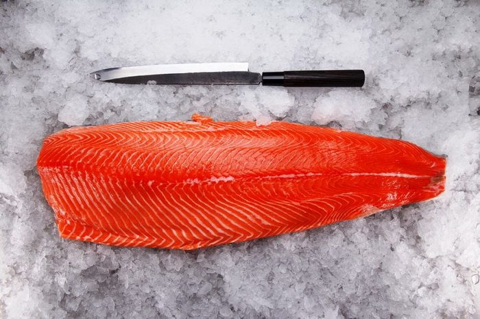 Фрукты и овощи идеальной формы и ярких цветов с большой долей вероятности напичканы нитратами и другими отнюдь не полезными веществами. К этому уже многие привыкли. А вот о том, что мясо и рыба могут на прилавке выглядеть неестественно, — забывают. Подсветка может творить чудеса, и кусочек вырезки будет куда аппетитнее под стеклом, чем на самом деле. А вот с рыбой еще интереснее, существуют способы с помощью пищевых красителей придать ей более яркий тон. Нужно ли вам это? Естественно, нет. Так что лучше отдавать предпочтение естественному окрасу.