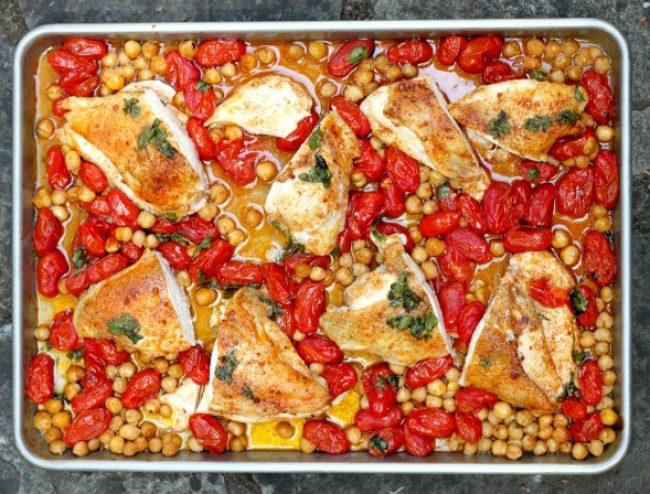 Курица, запеченная с томатами и нутом
