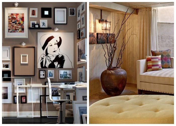 Исключение составляют композиции или фрески с 3D-эффектом, которые «раздвигают стены». Также не нужно устраивать на стенах комнаты картинную галерею, помещая туда все имеющиеся экспонаты, это не только не украсит ваше жилье, а наоборот превратит его в антикварную свалку.