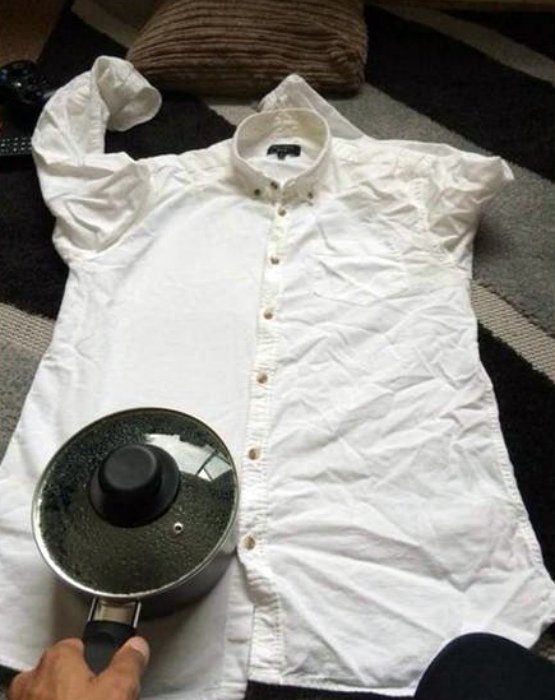 Если вы неожиданно обнаружили, что ваша одежда сильно помята, а под рукой нет утюга, поможет простая кастрюля. Наполните ее водой, вскипятите, а после поводите горячей кастрюлей по вещам, разглаживая складки.