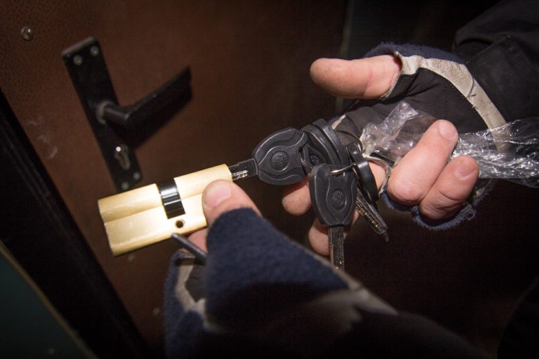 Второй этап — это проверка того, на какой замок закрыта дверь. Бывает на два, бывает на один, а бывает вообще не закрыта — такое встречается среди людей пожилого возраста.