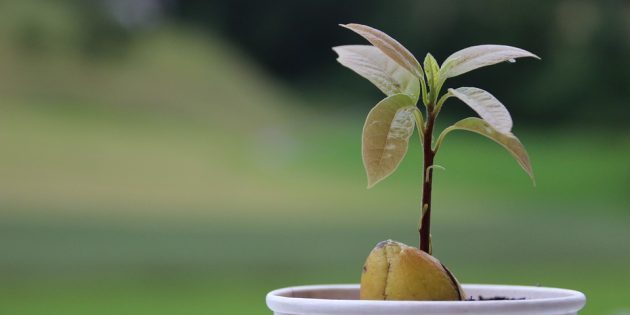 Когда спустя пару недель после прорастания корень достигнет 2–3 см, пересадите семя в горшок.