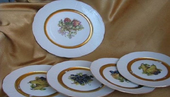 Столовая посуда с позолоченной или посеребрённой окантовкой. В состав такого рисунка могут входить краски с позолоты или серебра. Такая посуда запрещена для микроволновок, так как в ее оформлении используются металлы.