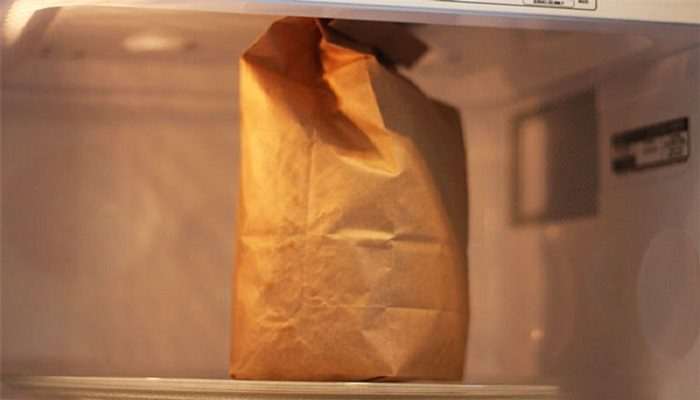 Не рекомендуется разогревать продукты в бумажных пакетах. А особенно коричневые пакеты, при нагревании они могут выделять токсины и впитаться в еду, что сделает ее вредной для здоровья. Пакеты еще могут возгораться.