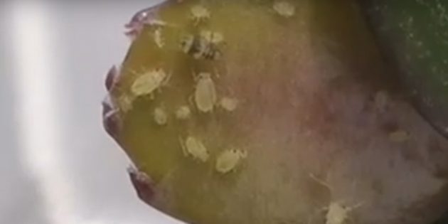 Симптомы: крошечные плоские чешуйки на кактусе.