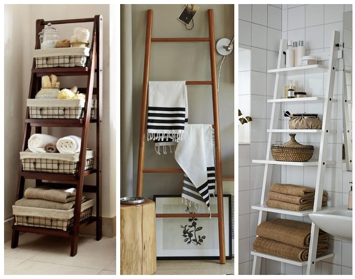 Дизайнеры советуют в этих целях использовать обычную стремянку, которая пылится на балконе или в гараже в ожидании следующего ремонта, ведь она полностью соответствует характеристикам этажерки.