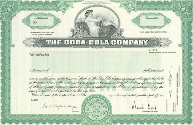 1. Паевой сертификат компании Coca-Cola