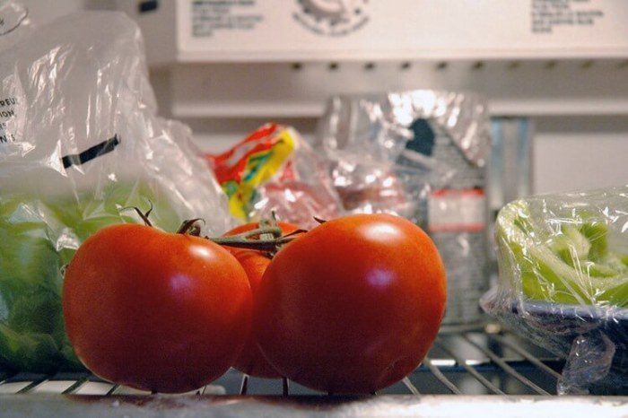 Сложно поверить, однако помидоры также не стоит хранить в холодильнике. Из-за пониженной температуры мякоть плодов размягчается, а кожура начинает чернеть раньше положенного срока. Иными словами, помидоры получают банальное обморожение. Хранить помидоры в холодильнике можно только при условии, что лежать они будут всего пару дней и на верхней полке.