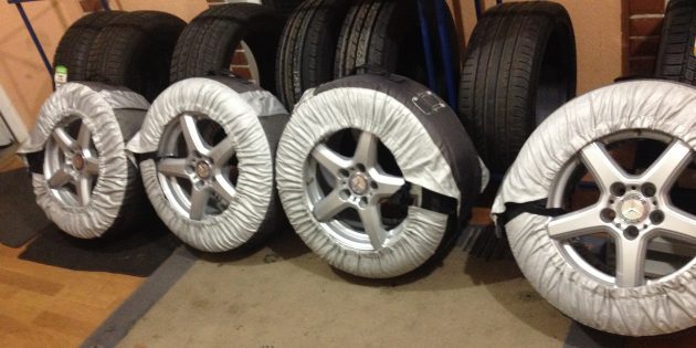 Для сохранения свойств резины желательно укрыть шины, чтобы защитить их от солнечных лучей и повышенной влажности. В качестве чехлов подойдут как специальные покупные варианты, так и обычные полиэтиленовые пакеты или пищевая плёнка.