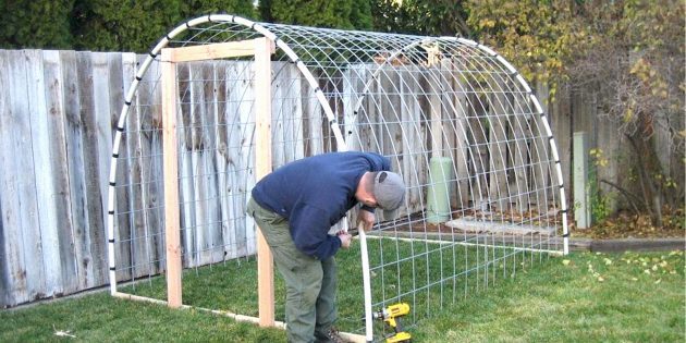 Вариации: каркас можно заменить пластиковыми трубами, а укрывной материал — плёнкой.