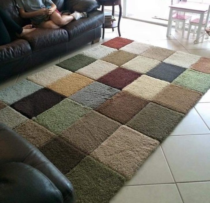 Во многих магазинах можно взять образцы ковровых покрытий бесплатно или за минимальную сумму. Соедините их скотчем — и получите отличный ковер.