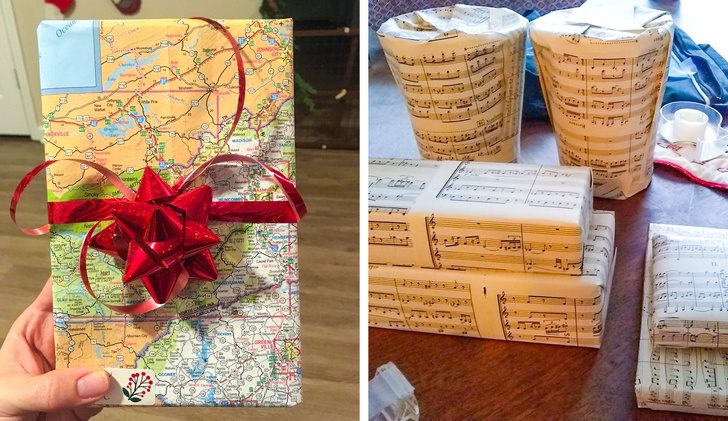 В качестве упаковочной бумаги для подарков можно использовать ненужные карты или старые нотные тетради.