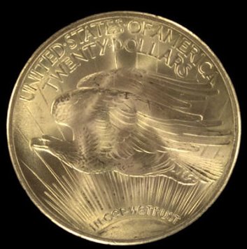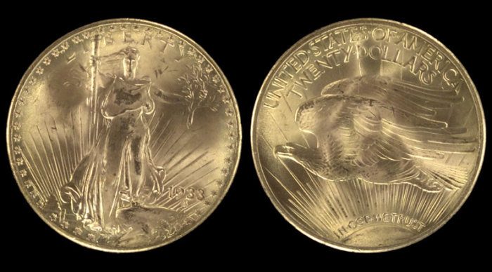 В 1933 году Соединённые Штаты Америки отчеканили новую монету из настоящего золота, номинал которой составлял 20 долларов. Но она не успела войти в общий обиход, и была отозвана с обращения всего за один год. Дизайн монеты был нарисован уже известным Августом Сен-Годеном, который изобразил на аверсе Свободу с классическим факелом и оливковой ветвью – символом мира. Нумизматы и историки полагают, что эти монеты толком и не были использованы и буквально за первый год своего существования были разграблены, переплавлены и ушли в чьи-то анонимные руки. На сегодняшний день известно всего о пятнадцати экземплярах. Одну монету около семнадцати лет назад оценили и продали за 7,5 млн.$. Две монеты выставляются в Национальной коллекции нумизматики США, а остальные – в Форт-Ноксе.