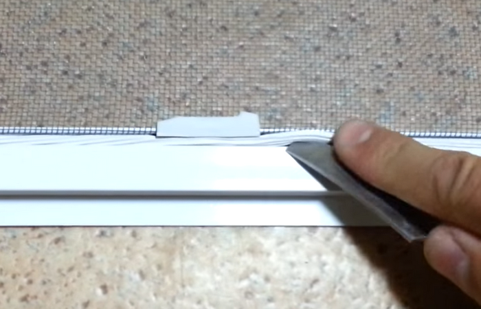 Изготовить ручку из бутылки несложно. Достаточно сделать полосу из пластика 5х1 см. Габариты длины и ширины указаны примерные, корректируйте их смело под конкретную москитную сетку. Получившаяся полоска сворачивается пополам в петлю и продвигается под шнур рамы. Перед фиксацией, обязательно проверьте еще раз диаметр петли, в него должен помещаться палец. Когда все будет сделано, останется только пододвинуть (очень аккуратно) уплотнитель.