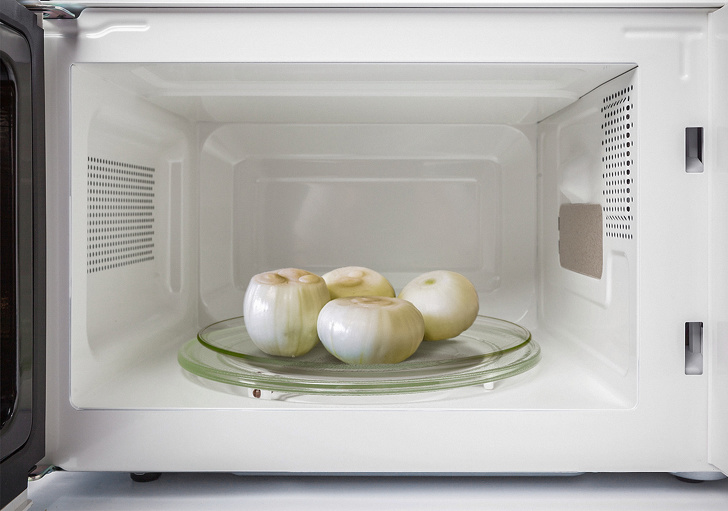 Когда специи и травы долго хранятся, они могут утратить аромат. Чтобы вернуть свежесть и пряность, можно слегка разогреть их в микроволновой печи. Времени это займет немного — около 10–15 секунд при установке мощности на максимум.Предотвращение плача от лука