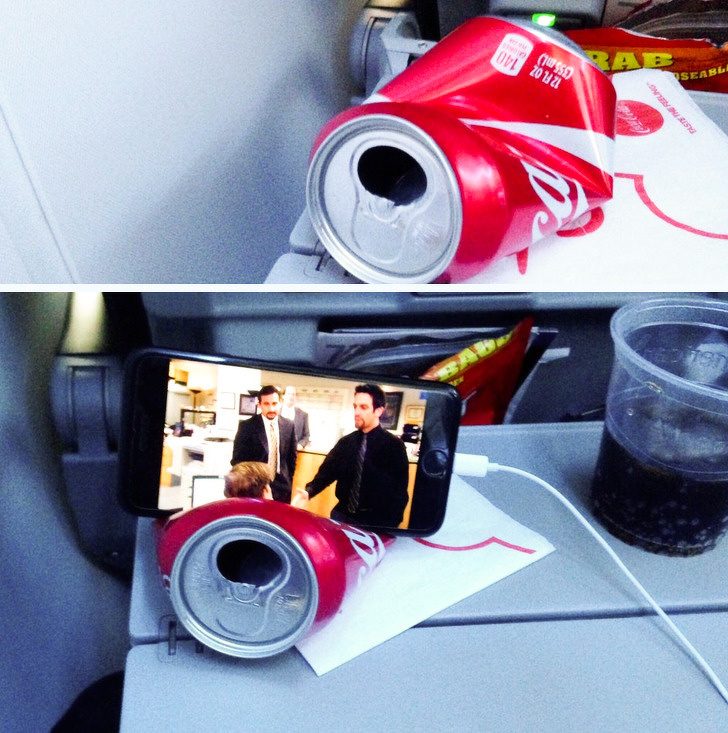 Долго лететь? Используйте банку колы, чтобы сделать подставку для телефона, и наслаждайтесь фильмом