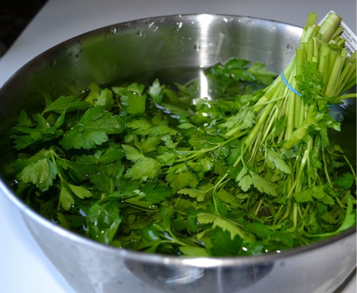 Если в процессе готовки вы обнаружили, что зелень завяла и напрочь потеряла свой вид, реанимируйте ее с помощью хитрости, подсмотренной у шеф-поваров. Для этого укропу и петрушке нужно сделать некое подобие контрастного душа. Сначала окуните пучки в горячую, а потом сразу в холодную воду. Примерно такого же эффекта можно достичь, опустив травы в холодный раствор из двух стаканов воды и двух столовых ложек уксуса.