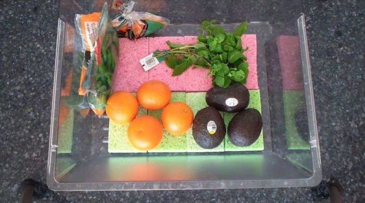 Если положить губки для мытья посуды в поддон для фруктов и овощей, они впитают конденсат и запахи. Так продукты дольше сохранят свою свежесть.