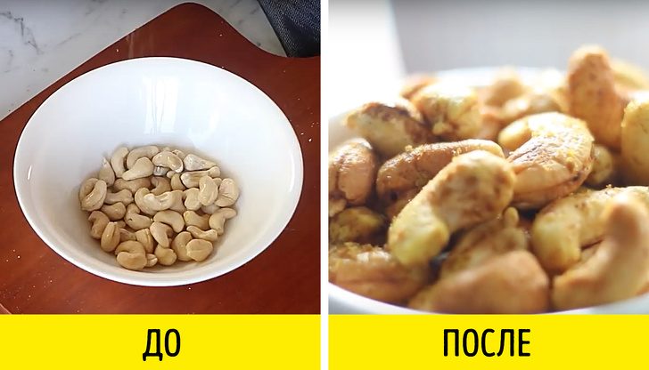 В микроволновой печи можно поджарить орехи, причем гораздо быстрее, чем обычно. Надо только рассыпать их по плоскому блюду и нагревать в течение минуты на высокой мощности. И так 4–5 раз, перемешивая орехи в перерывах.