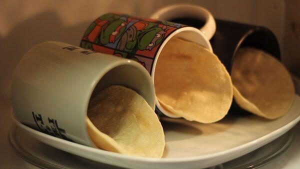 Любите домашнюю шаурму или тако? Есть простой способ сделать готовые формы для любимого блюда из лаваша. Просто засуньте куски лаваша в стаканы, а стаканы — в микроволновку. После минутного нагрева лаваш примет форму кружки и в него можно будет положить что угодно.