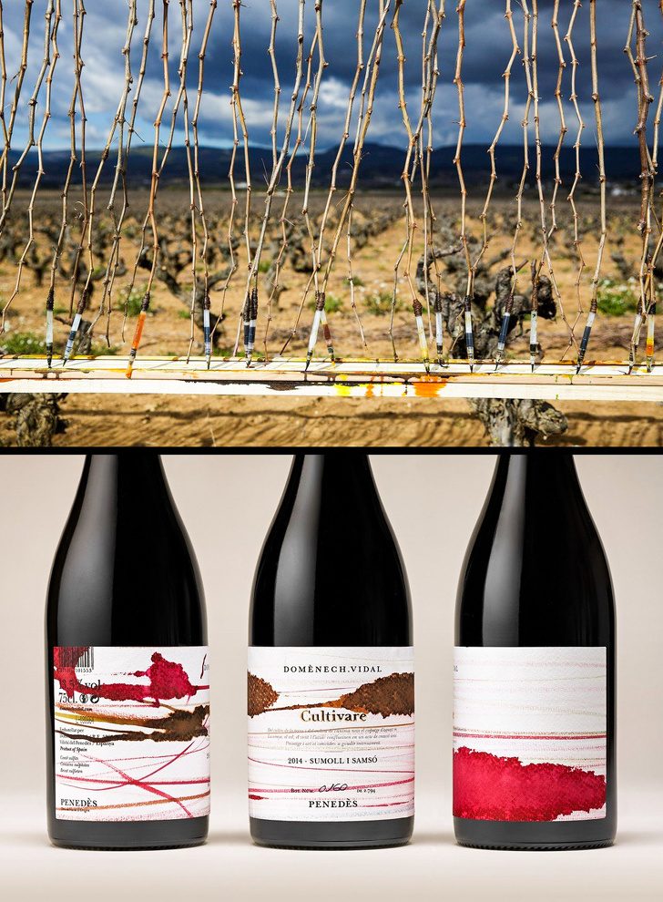 Виноградная лоза под воздействием ветра рисует каждую этикетку для вина Domènech.Vidal