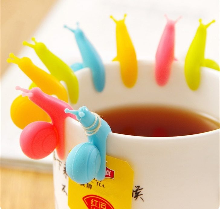 Цветные улитки на кружке выполняют практическую функцию: они удерживают ярлычок чайного пакетика.