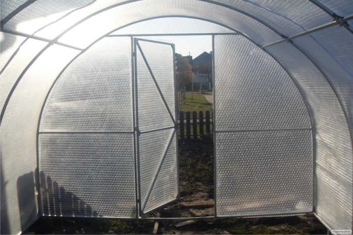 Использовать пленку можно не только для создания штор, но также и для организации на дачном участке теплицы. Правда для реализации подобного проекта (в большинстве случаев) понадобится еще больше пузырчатой пленки, чем для создания шторы. Несмотря на это, данный материал полностью оправдывает свое использование.