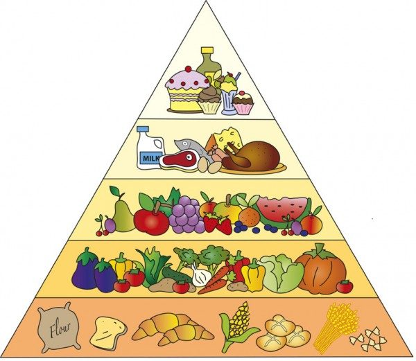 Также обязательно ознакомьтесь с базовой пищевой пирамидой (картинка выше) и адаптируйте ее под свой рацион. Рекомендуется, чтобы во время каждого приема пищи в нем присутствовали продукты минимум из трех разных групп. Например, это может быть каша (нижний ярус), овощи (второй ярус) и яйца (четвертый ярус).