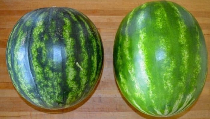 Потом начинайте оценивать его внешность по цвету. У зрелого безнитратного арбуза полосы будут ярко выраженными и максимально контрастными. Чем темнее будут сами полосы, тем в ягоде будет больше питательных веществ и она будет слаще. И последнее, не стесняйтесь потрогать сам плод, если корка окажется мягкой значит, он еще недозрел и продолжает впитывать влагу.