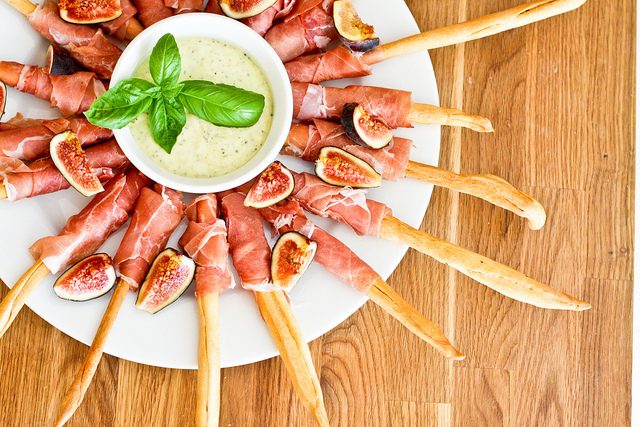 Рецепт приготовления такой закуски для пикника прост: оберните гриссини тонкими ломтиками прошутто и украсьте кусочками инжира. Подавайте с соусом песто, томатным, чесночным, бешамель или другой итальянской заправкой.