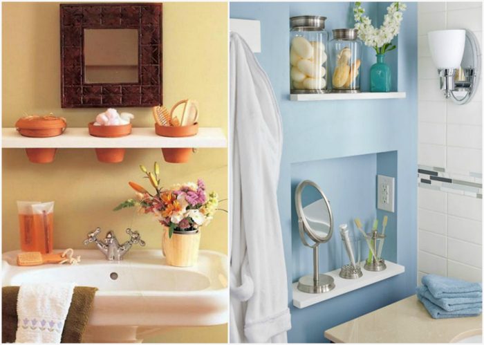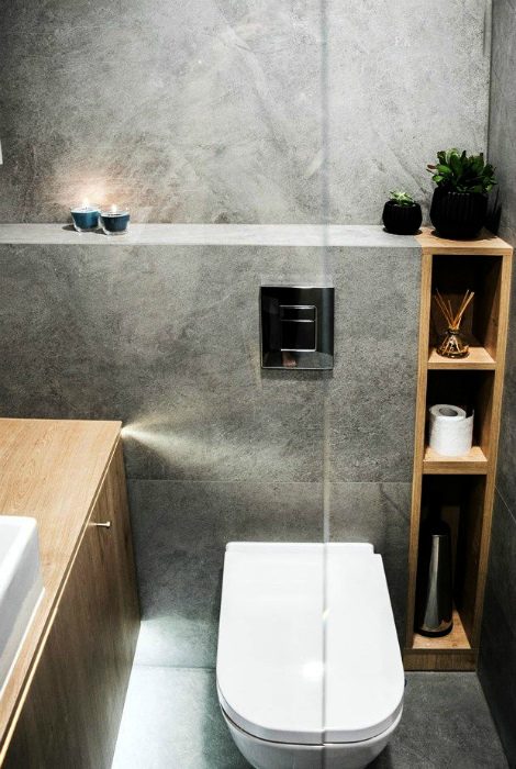 Громоздкая мебель совершенно не годится для обустройства небольшого санузла, а вот ниши подходят для него идеально! С их помощью можно не только организовать хранение, но и расставить акценты. Для этого выделите полки в нишах рамками, отличающимися по фактуре от отделки стен.