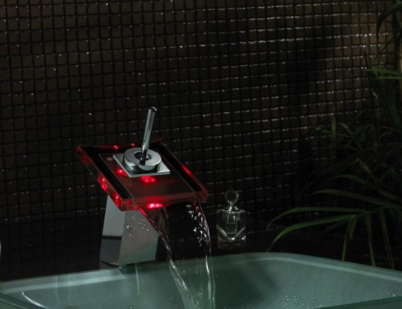 Необычный смеситель с подсветкой подскажет температуру воды с помощью цвета. Красный — для горячей воды, а синий — для холодной.