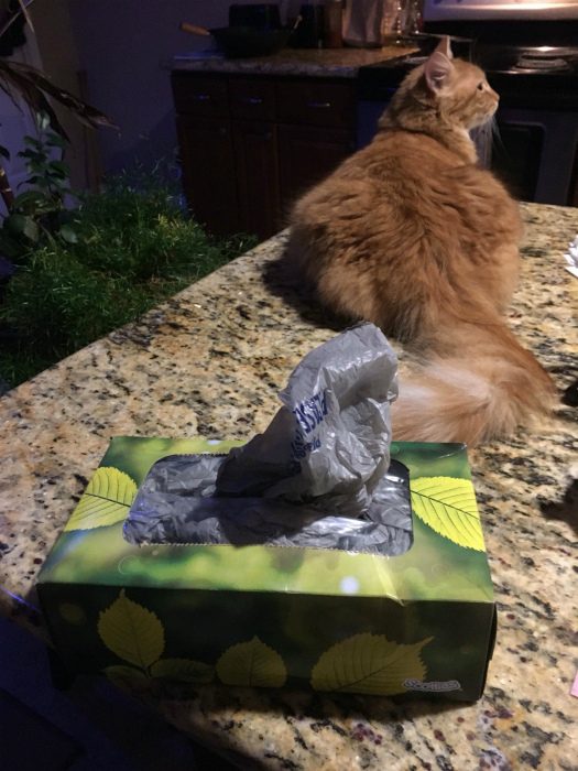 Вместо того, чтобы держать дома пакет с пакетами, заведите для них специальную подставку. Ею может стать пустая картонная коробка из-под бумажных салфеток.