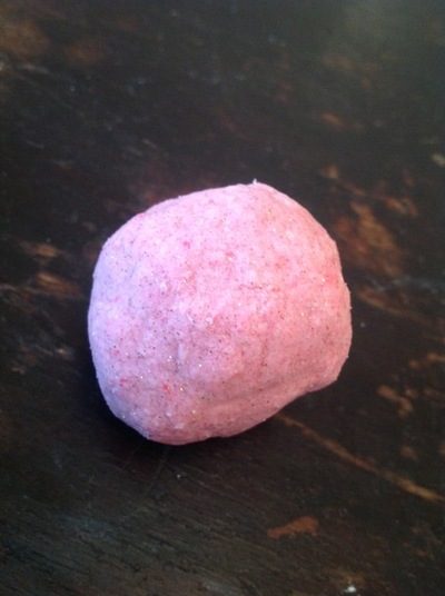 Шаг 3. Вскоре смесь начнет слипаться в комки. Это как раз то, что нам нужно. Как только комки станут достаточно крупными, поместите массу в форму или слепите бомбочку в форме шарика.