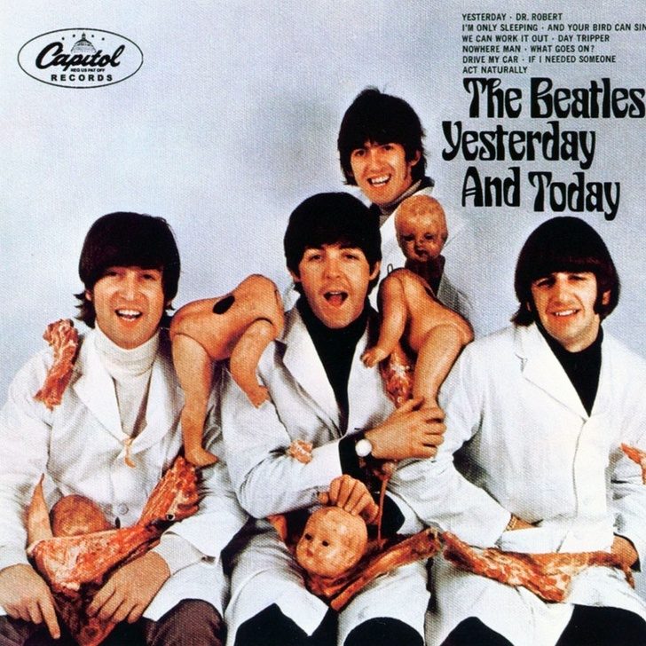 Из-за ранней обложки этого альбома The Beatles разгорелся скандал. На ней музыканты были облачены в белые одежды мясников, украшены отрезанными кукольными головами и кусками мяса. За это оборот пластинки прозвали «обложка мясника». В итоге пришлось срочно заменять фотографию на ту, где четверка позирует на фоне сундука. А пластинки с оригинальным изображением мгновенно приобрели статус раритетных.