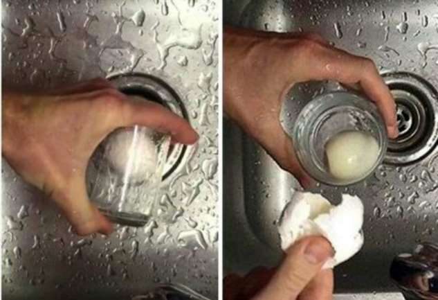 Яичная скорлупа может испортить маникюр и настроение. Чтобы такой неприятности не произошло с вами, возьмите на заметку данный прием. Его суть заключается в использовании стеклянного стакана и небольшого количества воды. Далее остается только поместить внутрь вареное яйцо и энергично взболтать.