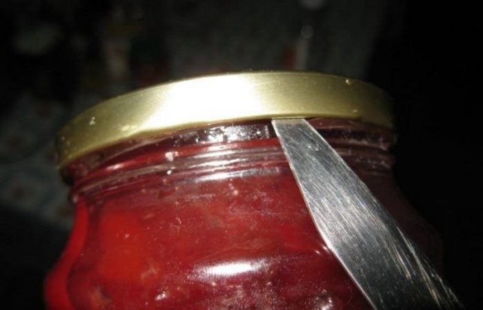 Еще большее радикальный и отчаянный способ «открывания». В крышке, которая совершенно отказываться поддаться на усилия можно просто проделать дырку. Лучше всего для этой работенки подойдет (опять-таки) нож. Прорезаем дырку нужного размера и извлекаем содержимое. При желании можно срезать крышку с банки целиком. Главное, проявлять при этом осторожность, чтобы не пораниться.