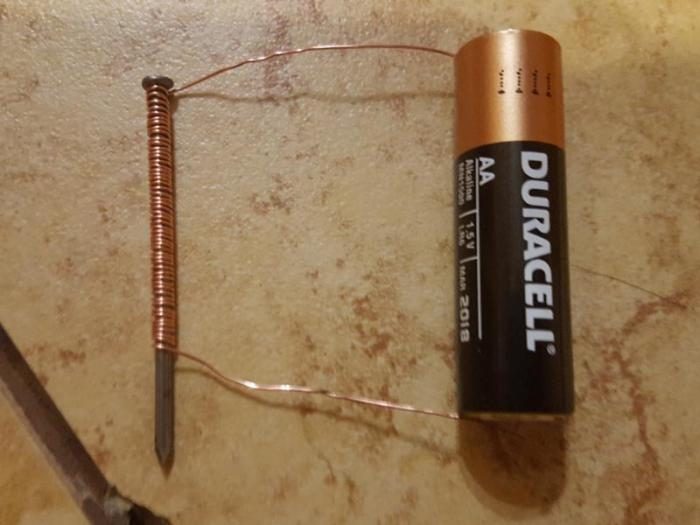 Уронили что-то металлическое на ковер с длинным ворсом? В такой ситуации помог бы магнит, однако он не всегда есть в доме. Благо, сделать электромагнит своими руками совсем не сложно. Во-первых, нужно раздобыть медную проволоку, батарейку и какой-нибудь крепежный элемент (болт или гайку). Во-вторых, нужно все это соединить: проволока наматывается на болт в одном направлении, а ее концы подсоединяются к полюсам элемента питания. Магнит готов.