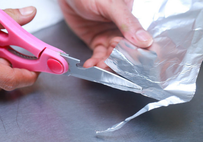 Еще фольга является отличным «точильным камнем» для ножниц. Достаточно просто свернуть лист материала несколько раз так, чтобы он стал достаточно жестким, после чего нужно порезать фольгу на мелкие кусочки. После такого ножницы будут как новые.