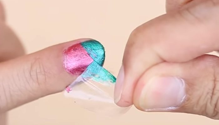 Многие девушки успешно применяют липкую ленту для домашнего маникюра. Используя кусочки ленты, креативные мастерицы создают красивые узоры. Самый простой вариант применения – это сделать двухцветный маникюр. Наносят лак и после высыхания заклеивают часть ногтя липкой лентой. Открытую область закрашивают лаком другого цвета. После высыхания ленту снимают и получают красивый маникюр с ровной линией.
