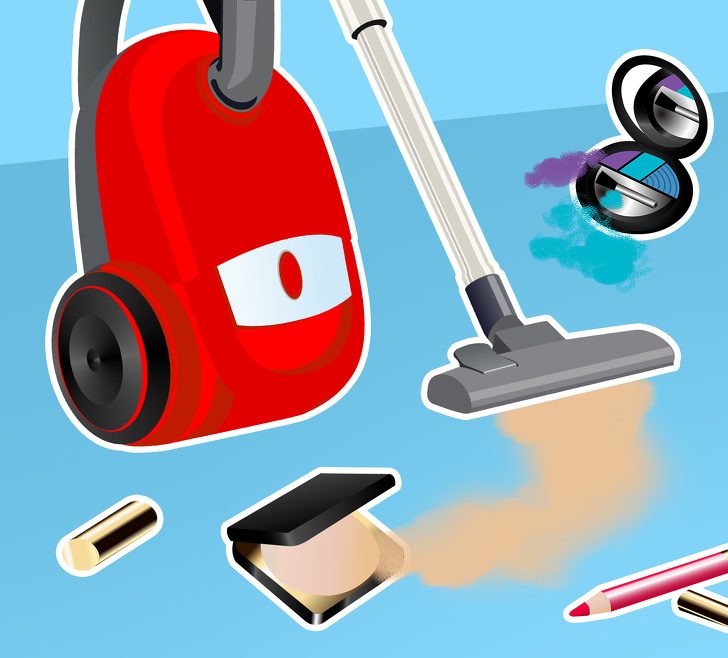 В пудре, тенях, хайлайтере и прочей косметике, которая кажется сухой, есть различные масла и вещества, которые начинают плавиться под воздействием горячего воздуха. Поэтому косметика считается одним из опасных врагов пылесоса — жировая составляющая расплавится внутри прибора и забьет механические части и фильтры. Очистить фильтры от такой массы практически невозможно, они подлежат замене.