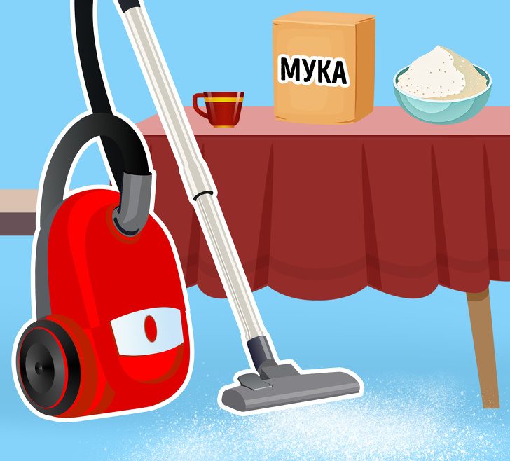 Иначе она повредит любому пылесосу: забьются все фильтры, часть муки может попасть в мотор, выводя его из строя.
