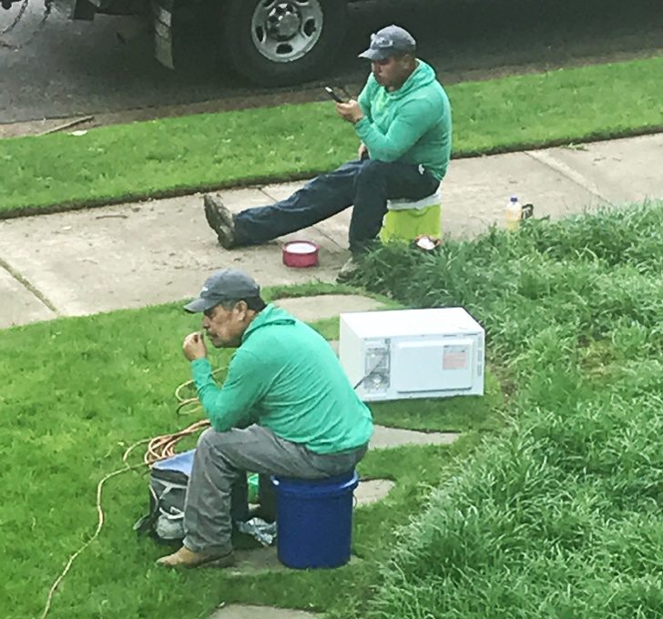 4. Рабочие взяли с собой микроволновку, чтобы обедать горячим