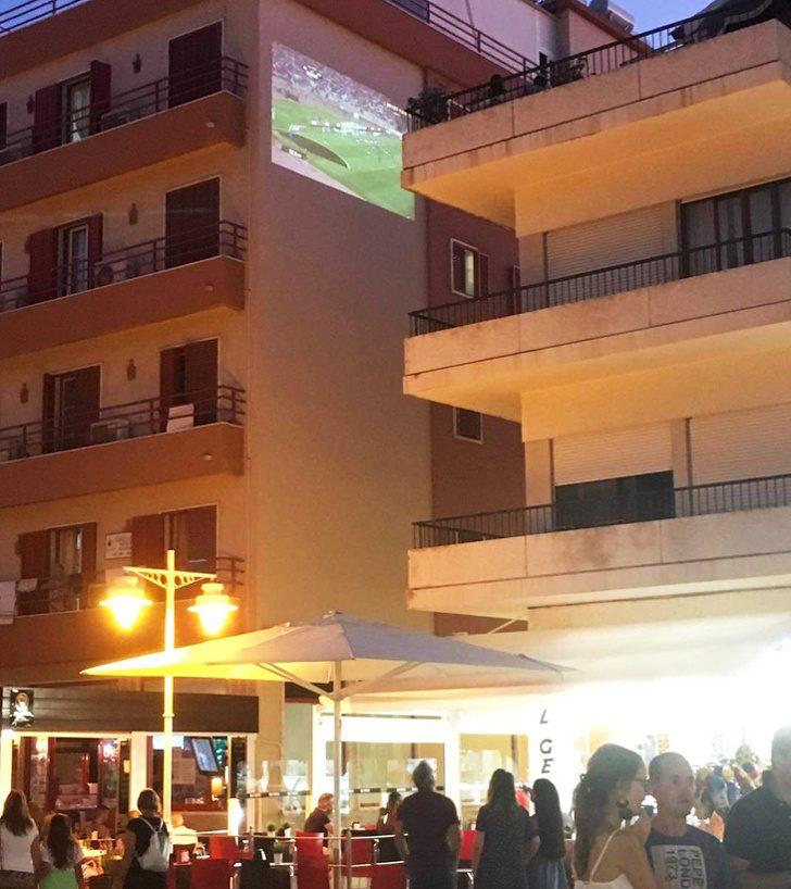 1. Эти ребята смотрят футбольный матч, используя стену соседнего здания как экран для проектора