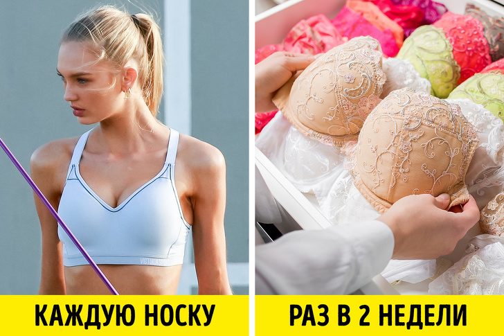 Имея в запасе несколько комплектов нижнего белья, можно каждый день менять их и стирать лифчики реже. Так сохраняется их товарный вид, они не растягиваются и не теряют форму. Что касается спортивных топов, то вариантов нет: стирать необходимо после каждого использования.