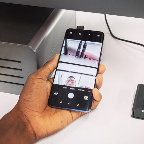 Парень демонстрирует, как камера для селфи помогает заглянуть в труднодоступные места (такие, как задняя сторона компьютера)