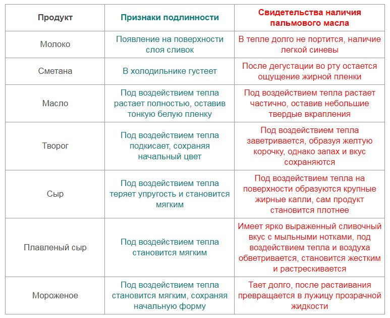 Для начала изучите этикетку. Если в составе продукта вы видите «растительные жиры», скорее всего, под ними подразумевается пальмовое масло.Натуральное качественное сырье не может стоить дешево. Поэтому если вы собрались купить сливочное масло за 40-60 рублей за упаковку, будьте готовы к тому, что это масло изготовлено из малоценного растительного жира. Сыр дешевле 400 рублей за кило или стаканчик мороженого стоимостью ниже 30 р. тоже вызывают подозрения.
